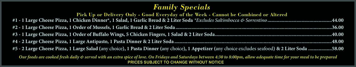 • Appetizers/Salads/Burgers/Focaccia/Wings