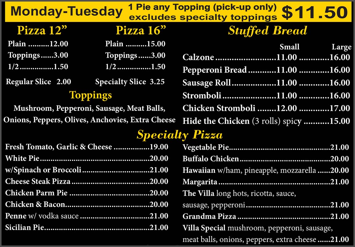 • Appetizers/Salads/Burgers/Focaccia/Wings